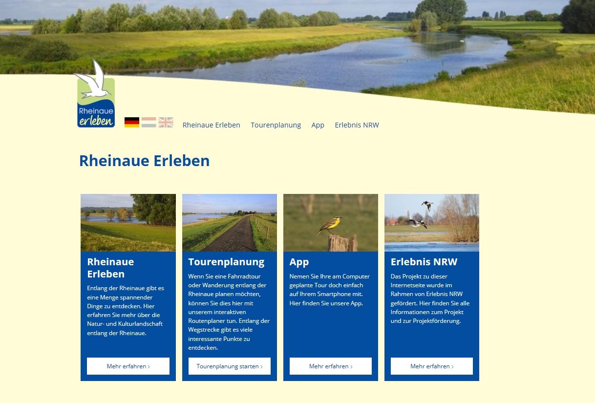Webportal & App für Rheinaue-Naturtourismus im Kreis Kleve.